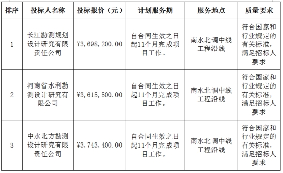 南水北調(diào)中線運(yùn)行安全監(jiān)測(cè)處置限值研究項(xiàng)目中標(biāo)候選人公示