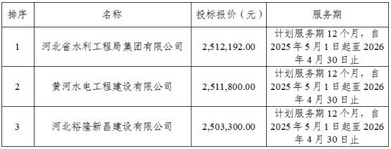標(biāo)段1:南水北調(diào)中線河北分公司2025—2026年應(yīng)急搶險隊(duì)伍采購項(xiàng)目第一標(biāo)段(標(biāo)段編號:NSBD2025FW36901/01;合同編號:NSBDZX/HB/YW/GC-2025-013)