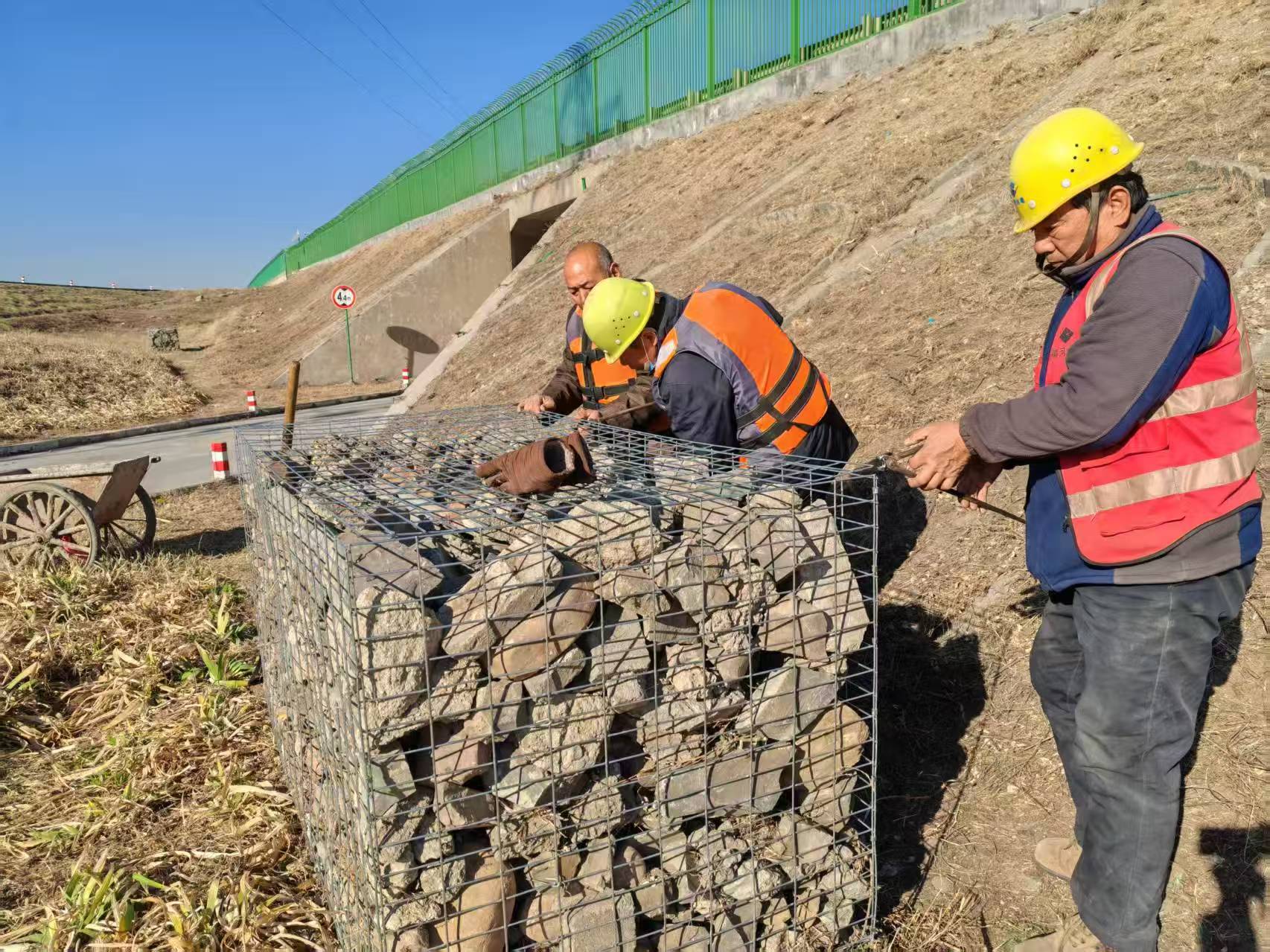 年關(guān)將至,現(xiàn)場施工接近尾聲,為做到各施工作業(yè)面場清料凈,同時(shí)消除火災(zāi)隱患,近日,永年管理處開展“美化環(huán)境 變廢為寶”活動(dòng),組織全體職工聯(lián)合外委單位共同清理全線渠道垃圾,將塊石等雜物裝填至鉛絲籠中,通過堆疊綁扎筑成簡易鉛絲石籠,以備不時(shí)之需,共同守護(hù)水清岸綠的美麗中線。
